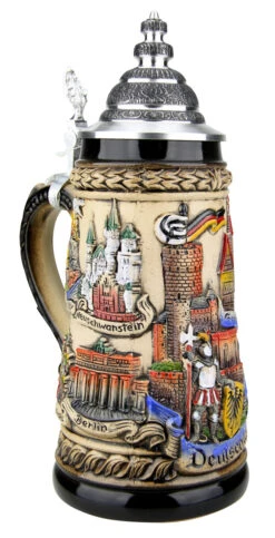 Able to hold up to a half liter of your favorite adult beverages, this beer stein is the perfect size for small, salon style gathering or all night parties alike! This stein is perfect for any German friends, soccer lovers, stein collectors, and more! Complete with a polished, pewter lid this stein helps to truly enhance your beer drinking experience, and is a classy way to enjoy your favorite lager of choice.